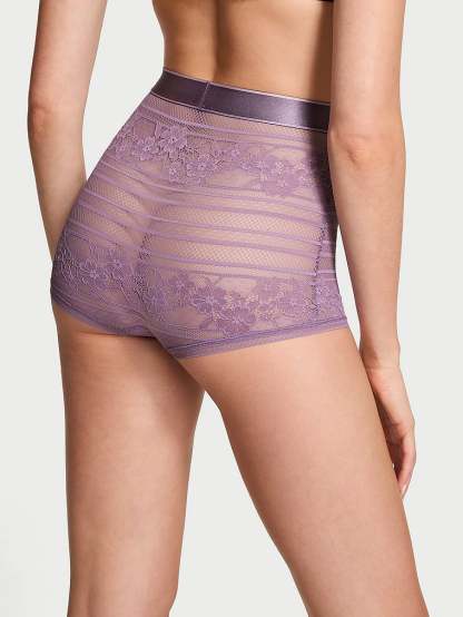 Cotton Logo Lace High-Waist Boyshort Panty Lace