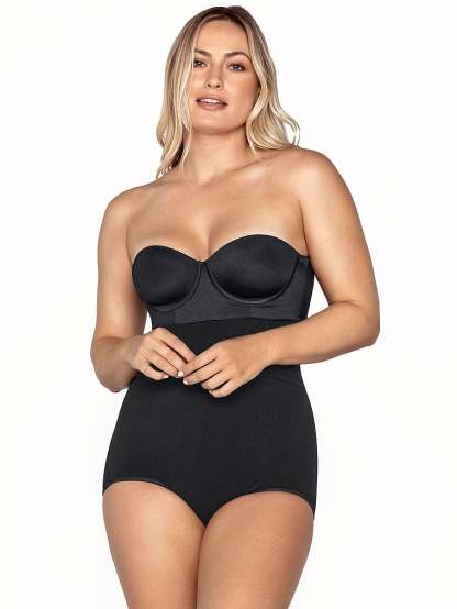 Made from SkinFuse®, a super-comfy compression fabric, this body shaper is designed to smooth out your entire torso. Targeted compression diamonds on the waist offer a little bit of extra definition. Light mesh cutouts and a thong effect in the back offer a light, natural-looking, butt-lifting effect. The straps are adjustable and removable—wear them classic, criss-cross, or take them off to go strapless.