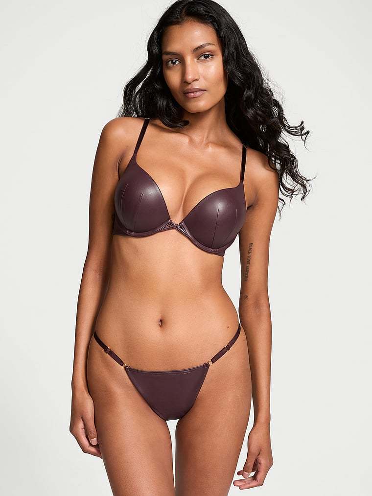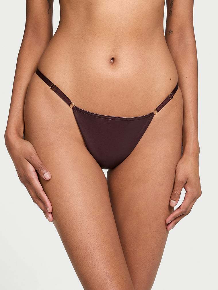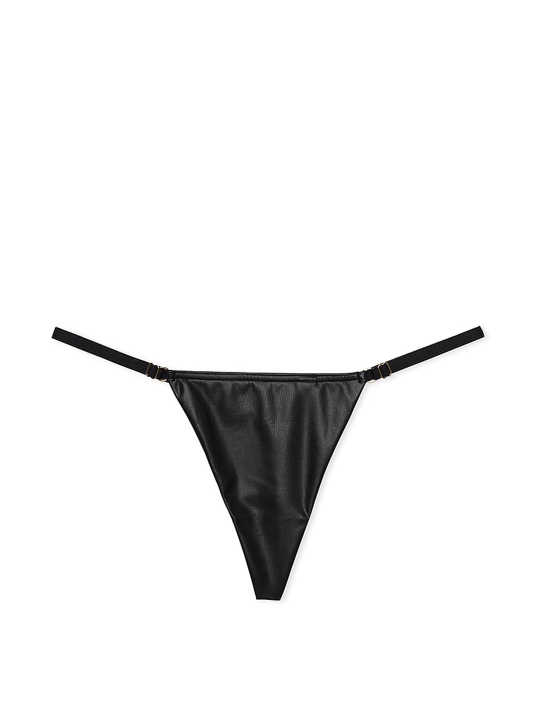 Faux leather puts an edgy spin on this sexy Panty, featuring adjustable side straps for a custom fit.