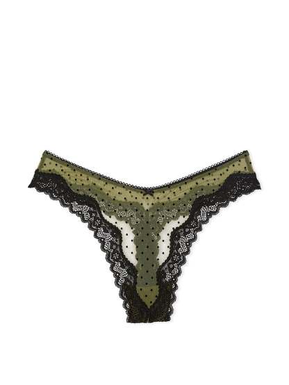 Victothtria's Secret Tease Mesh Lace-Trim High-Leg Thong Panty Mesh