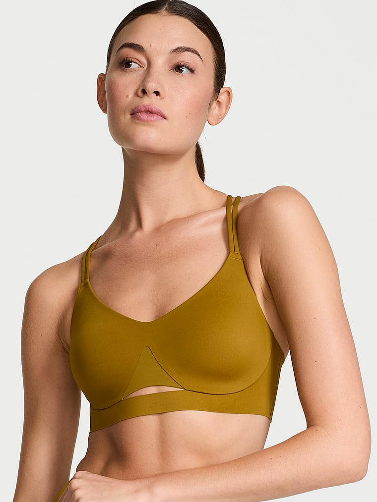 Double-strap, cross-back styling and an underbust cutout detail are trendy touches to this lightly padded style. Ideal for low-impact activities, it's one you'll want to keep in your athleisure rotation.