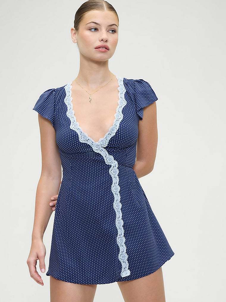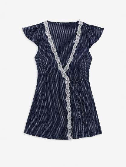 - Lace trim along the neckline and the entire front of the wrap