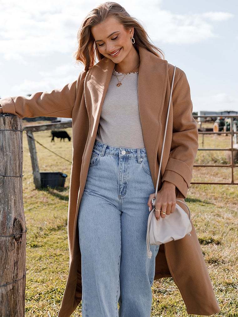 Functional and still sophisticated, this tie-front coat offers a detachable tie belt for polish and an oversize fit for modern flair.
