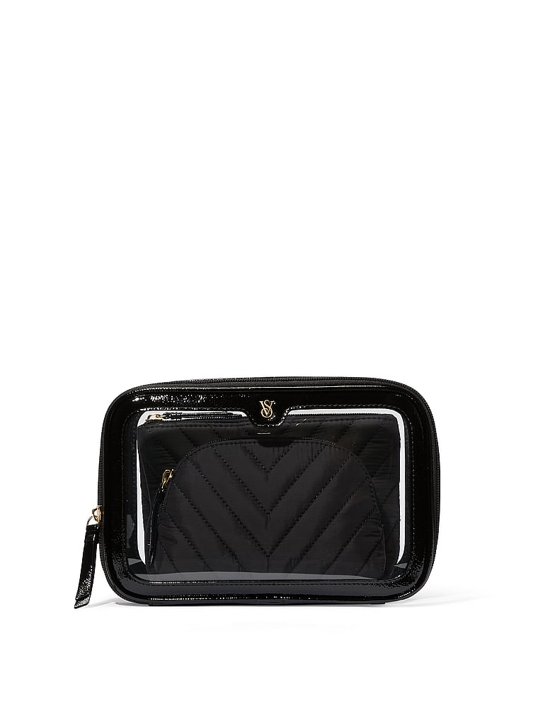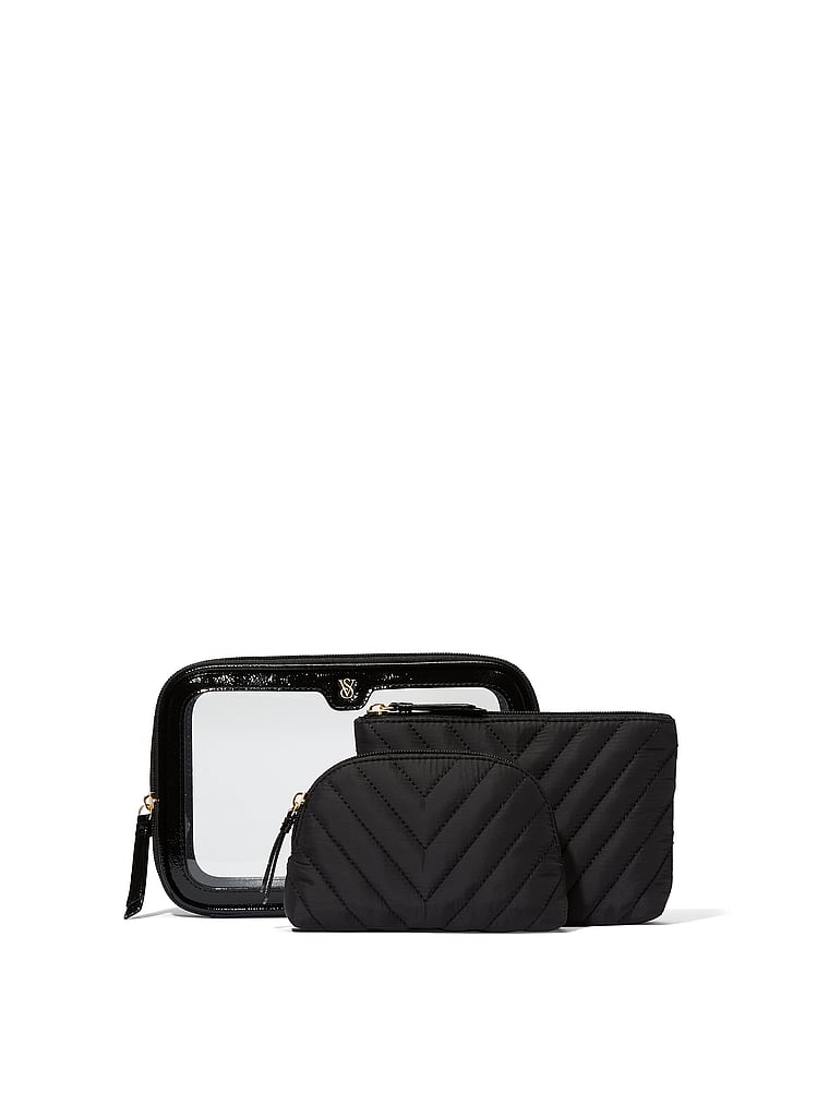 Triple the glam. This signature V-Quilt trio fits everything you could ever need. Together or separate, the clear exterior to helps you quickly find what you��re looking for.