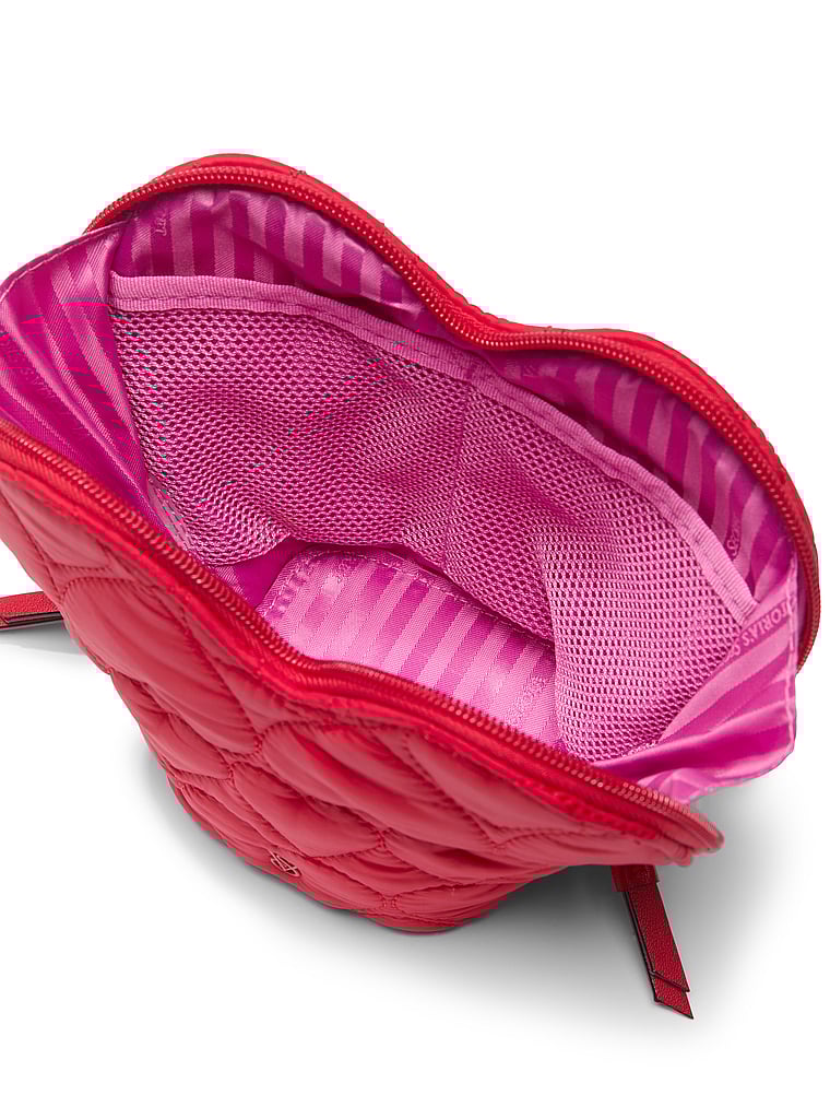 This adorable heart-shaped beauty bag stores your favorite makeup with love. The perfect thoughtful and useful gift for Valentine's Day. Includes interior mesh pockets for added organization.