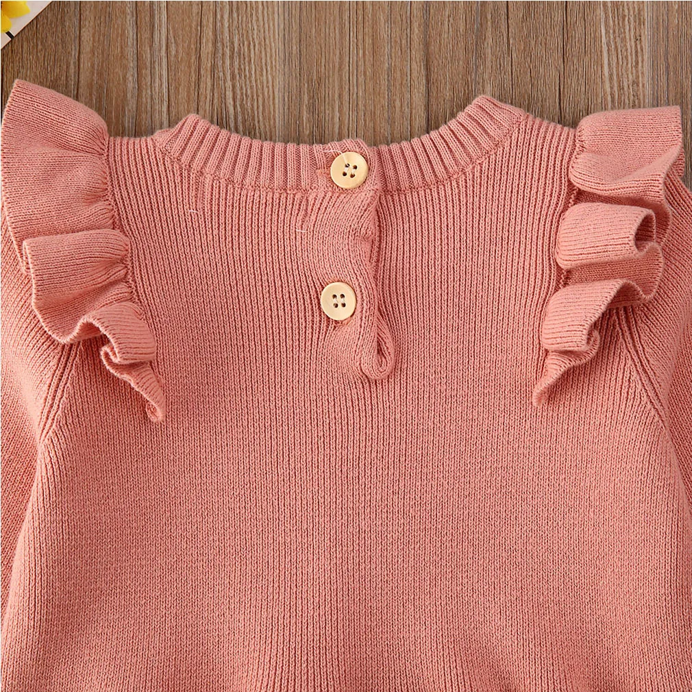 A simple crewneck casual romper. There are 3 colors to choose from. It has snuggly long sleeves, ruffles on the shoulders and is crafted by a hundred percent cotton material. The material is soft and gentle to the baby's skin. It is perfect for everyday wear for your little one.