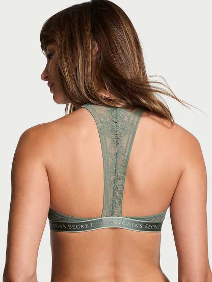 A little sporty, a little sexy, this lace-detailed racerback bra is the best of both worlds��and it's ultra-comfy, too. Features light lining for shape and a front-close for ease.