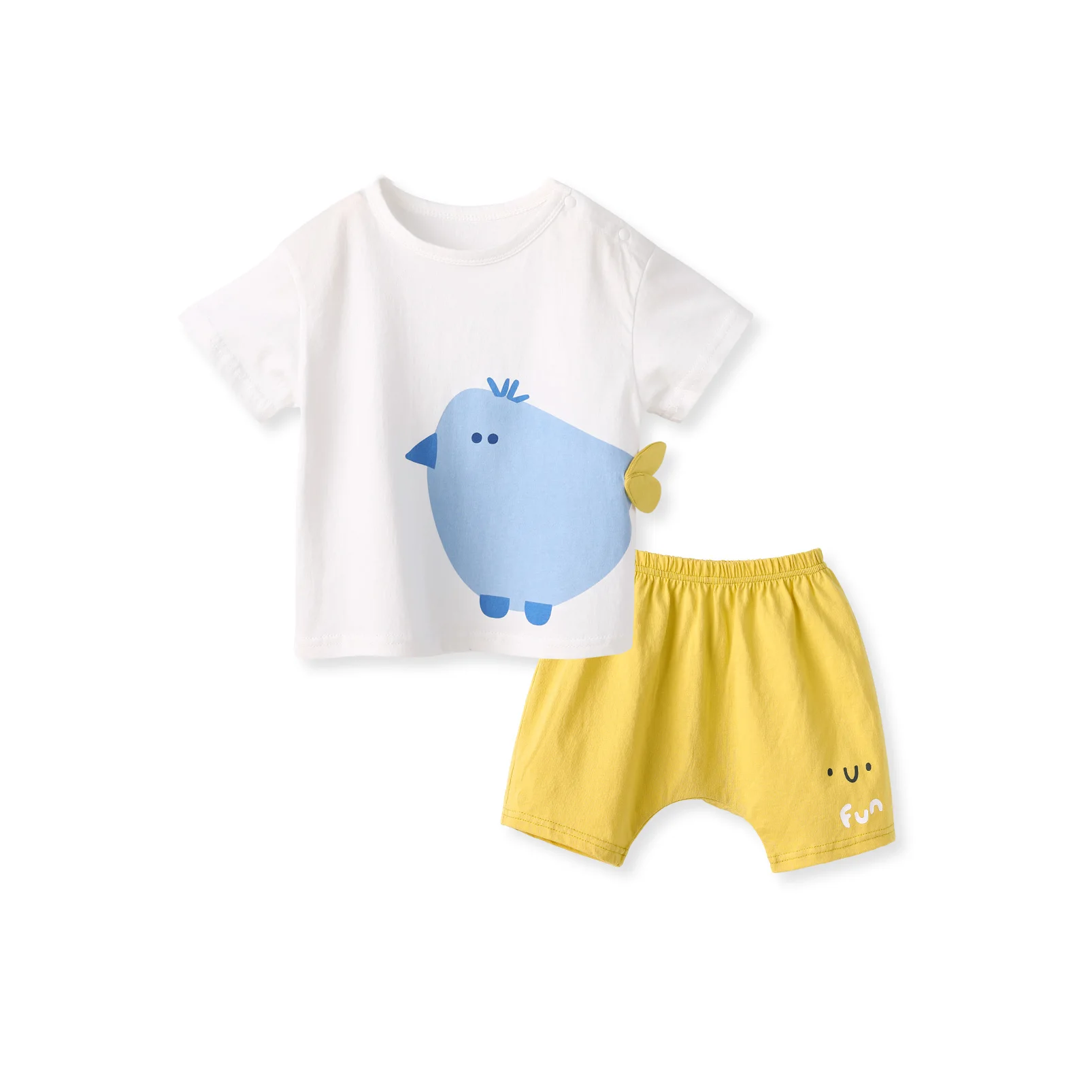 Summer fun is here! Let the fun begin with these 2 pcs short sleeve outfits. Soft and breathable, these quick-drying garments are perfect for your active kids. Featuring a short-sleeve shirt with a cartoon design and stretchy shorts. This set comes in a variety of colors and combinations to keep you and your child both happy.