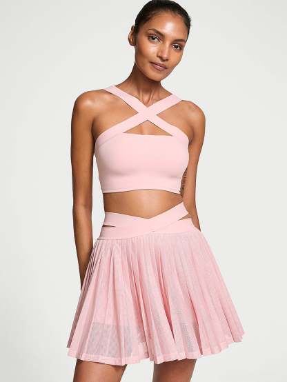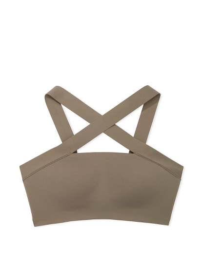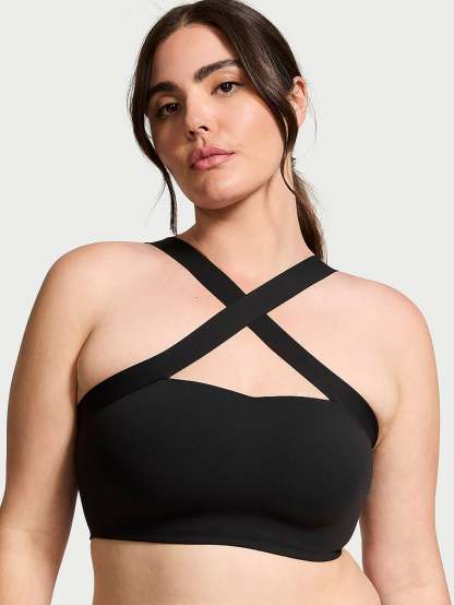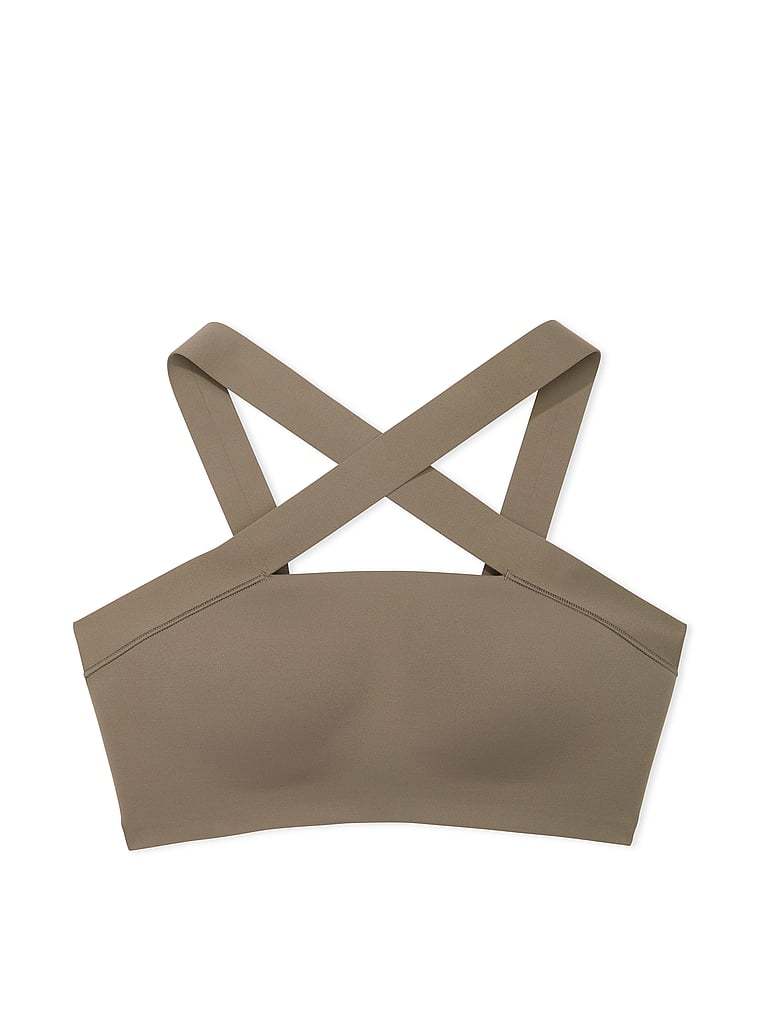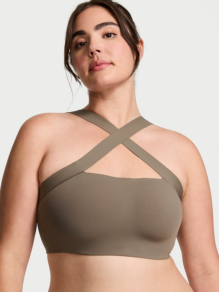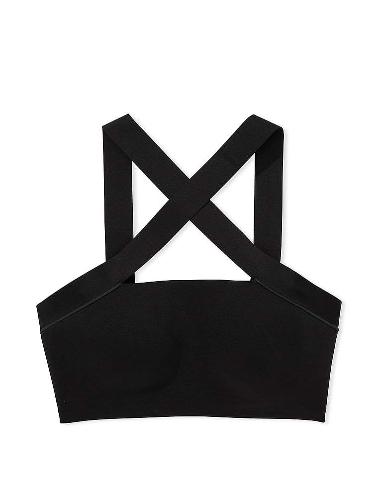Strike a (yoga) pose in this sporty-meets-sexy bandeau Bra. Pared-down styling puts the attention on the cross-front, halter-style strappy detail.