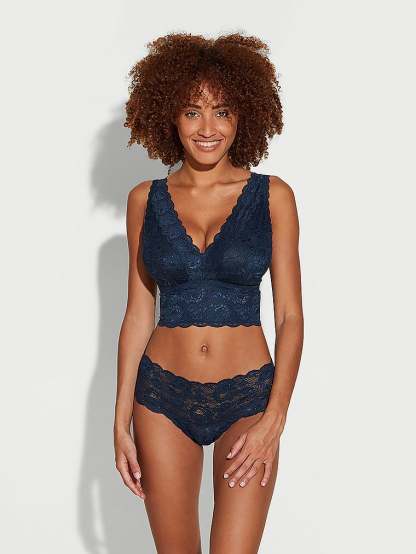 Comfortable mid-rise, meet chic scalloped lace. Cotton lining and a lay flat waistband that won��t roll complete the all-day look.