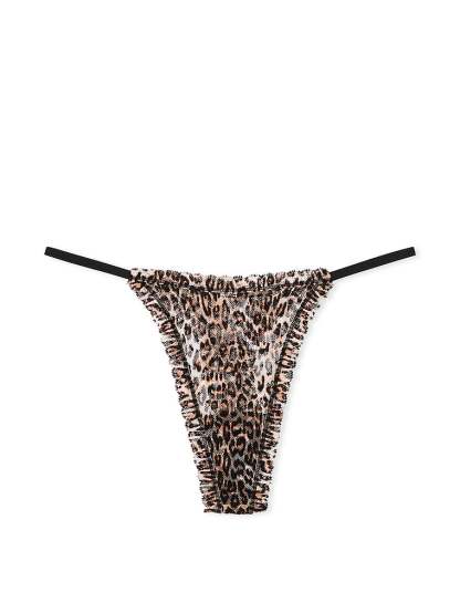 Our soft and stretchy lace is made for beauty and comfort. Showcased here on a string thong, in an array of colors and prints.