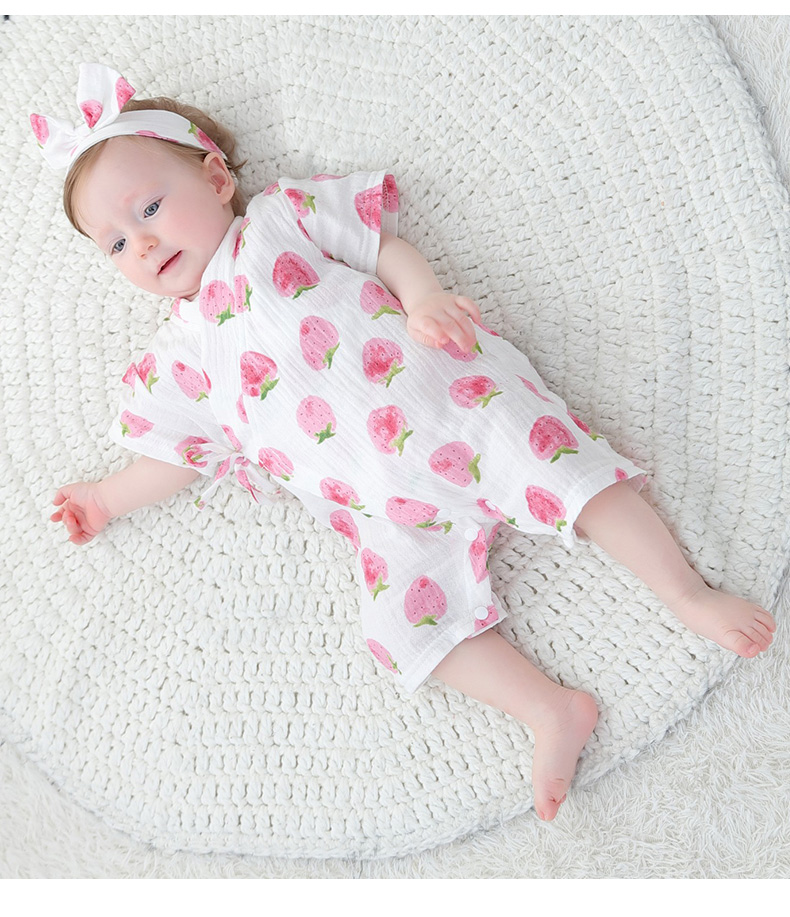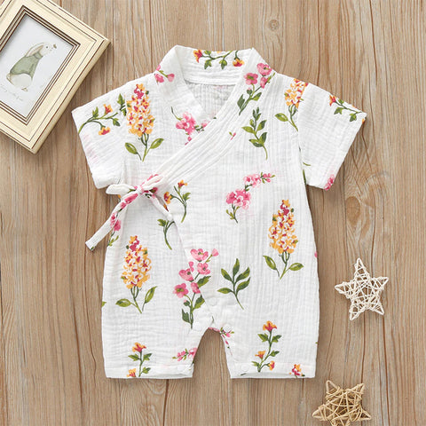 This floral kimono romper is a must-have for your baby wardrobe. Besides being super cute, these floral kimono rompers with side snaps or ties minimize contact with the baby's still-sensitive umbilical cord stump.