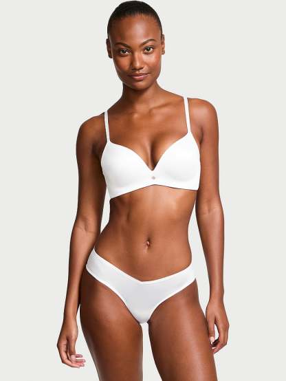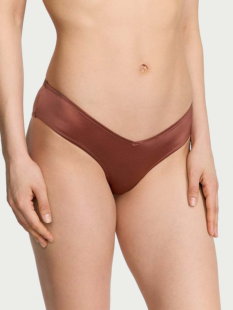 A V-cut front and strappy details on the back of this silky-smooth pair add unexpected, sexy touches.