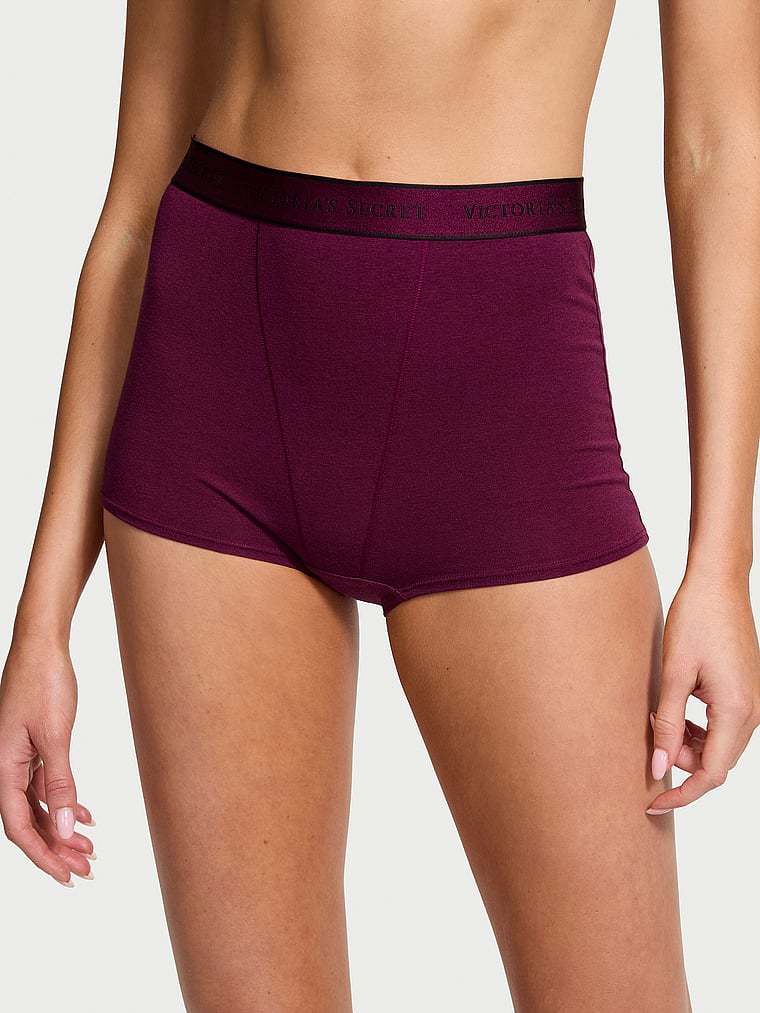 With a borrowed-from-the-boys look and flattering high waist��you��ll love these supersoft shorties featuring our signature, stretchy logo waistband.