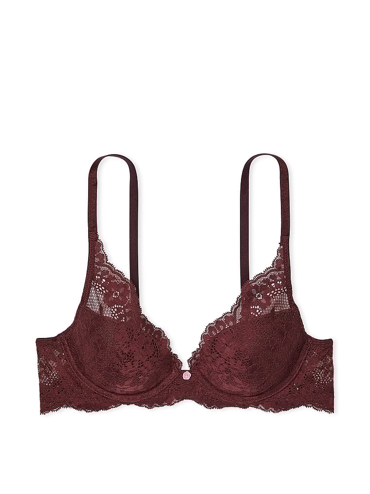 Feel it to believe it: You've never experienced this level of luxurious comfort in a Bra. With tons of innovative elements, from dreamy memory-foam padding to stretchy, smoothing lace wings, this plunging lace bra is made with 1/2-cup lining that is both supportive and unrestrictive.