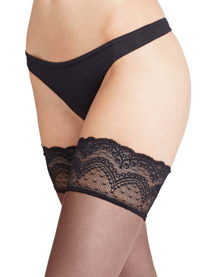 Upgrade to luxe in sheer thigh highs that are equal parts sexy and versatile. A unique 3D knitting technique makes the mesh structure of the material soft and lush to the touch. Decorate lace adds a touch of elegance, while a non-slip silicone backing keeps them in place. By FALKE.