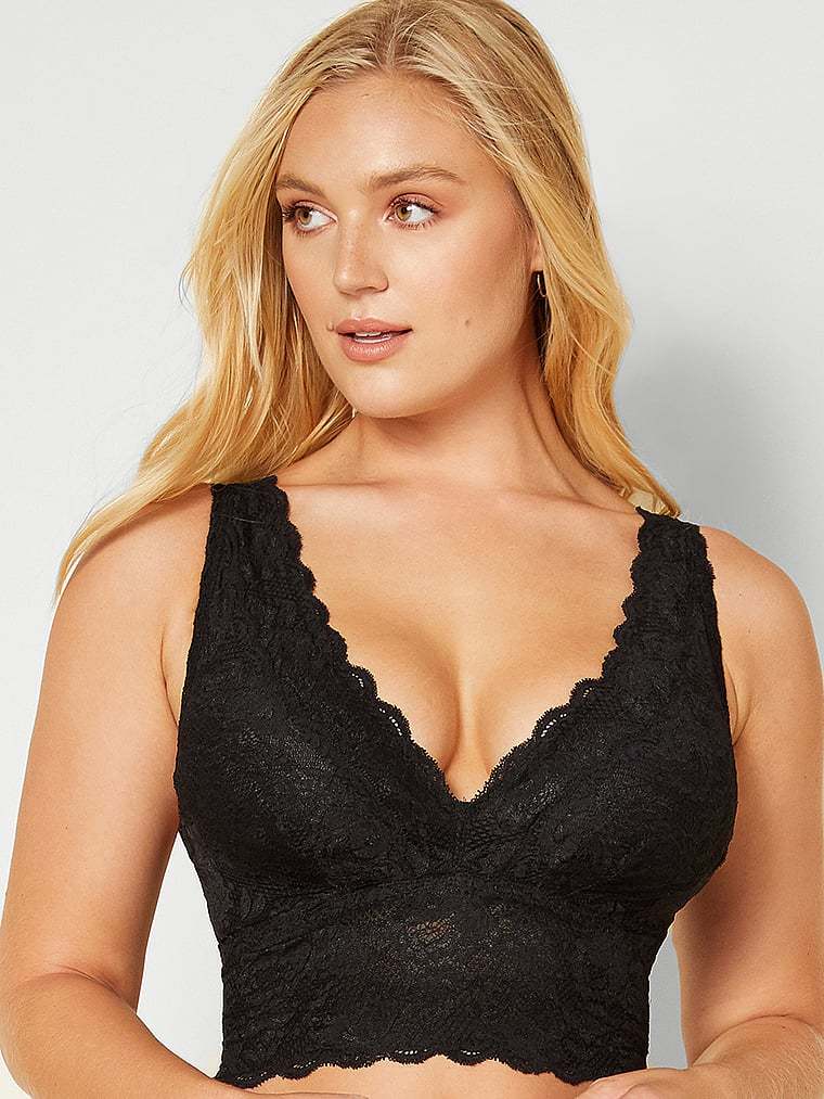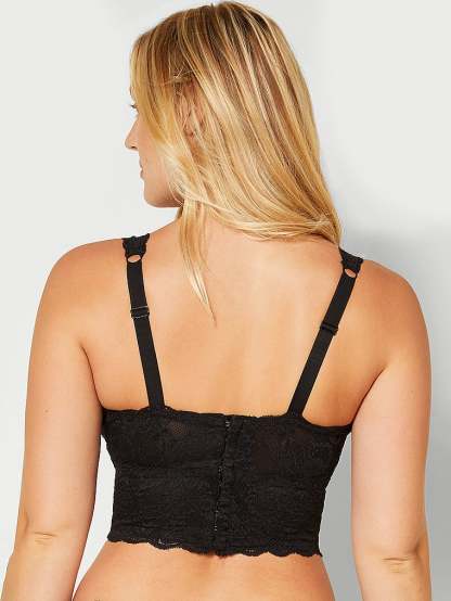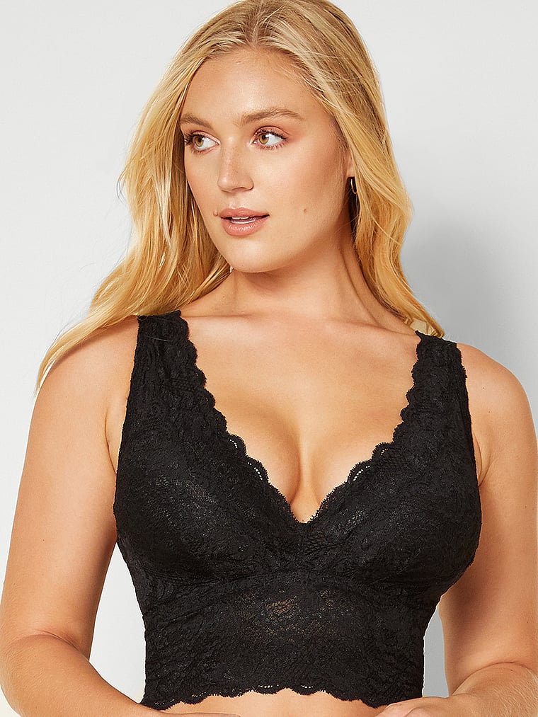 A lace-trimmed, longline bralette gets a supportive update with power mesh. Non-padded cups and a plunging neckline add drama to the look.