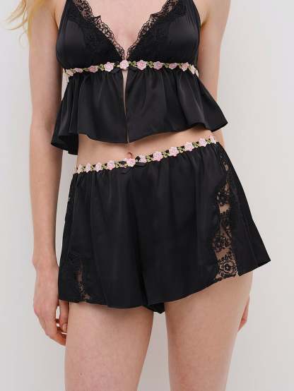 Inspired by dreams of the past, this vintage pair of sleep shorts features effortless lace seams and a fluttery silhouette that sits at the thigh.