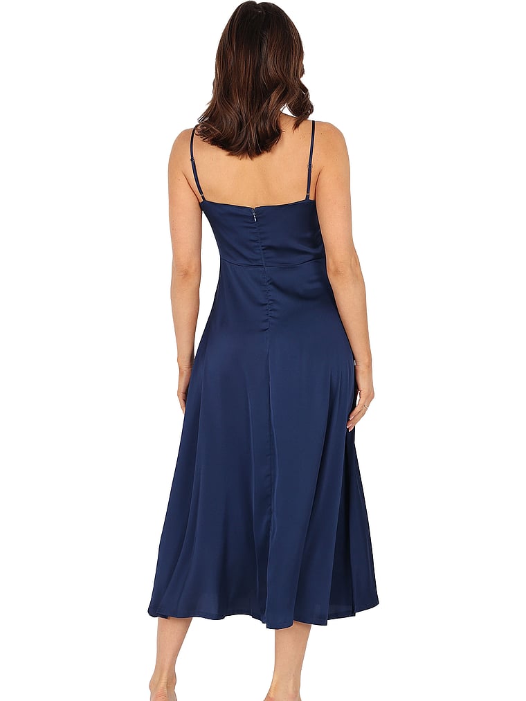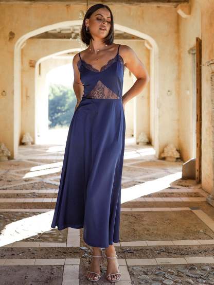 Show off your style confidence. Thin adjustable shoulder straps and intricate lace detailing under the bust make sure this midi dress will leave a lasting impression.