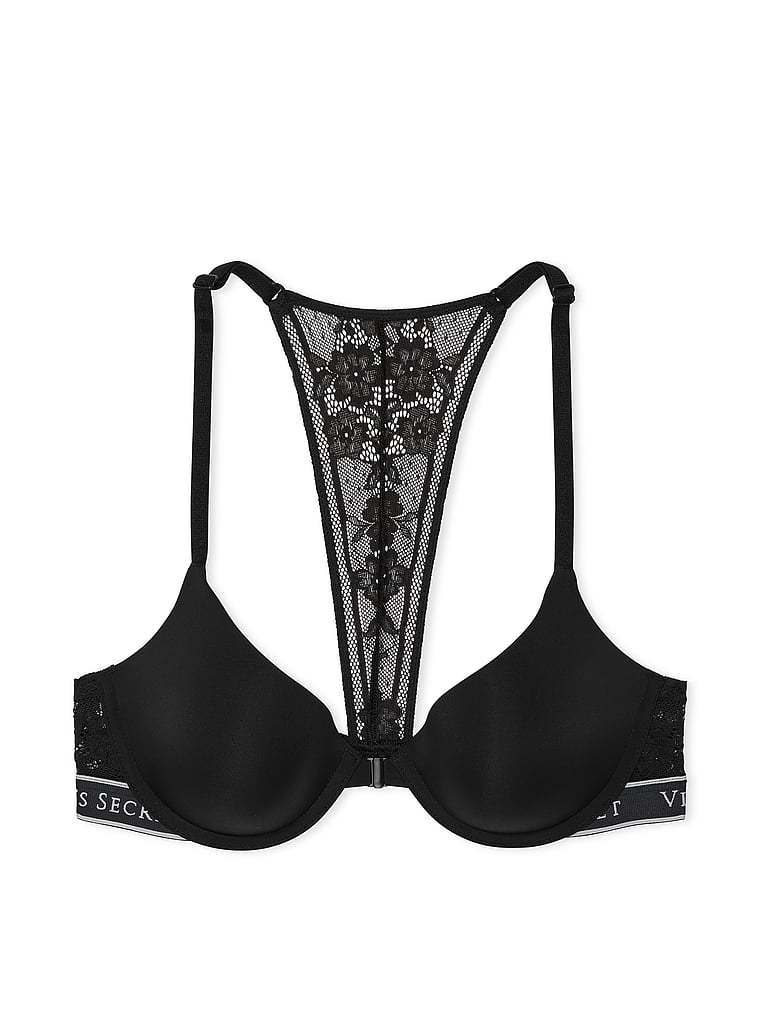 A little sporty, a little sexy, this lace-detailed racerback bra is the best of both worlds��and it's ultra-comfy, too. Features light lining for shape and a front-close for ease.