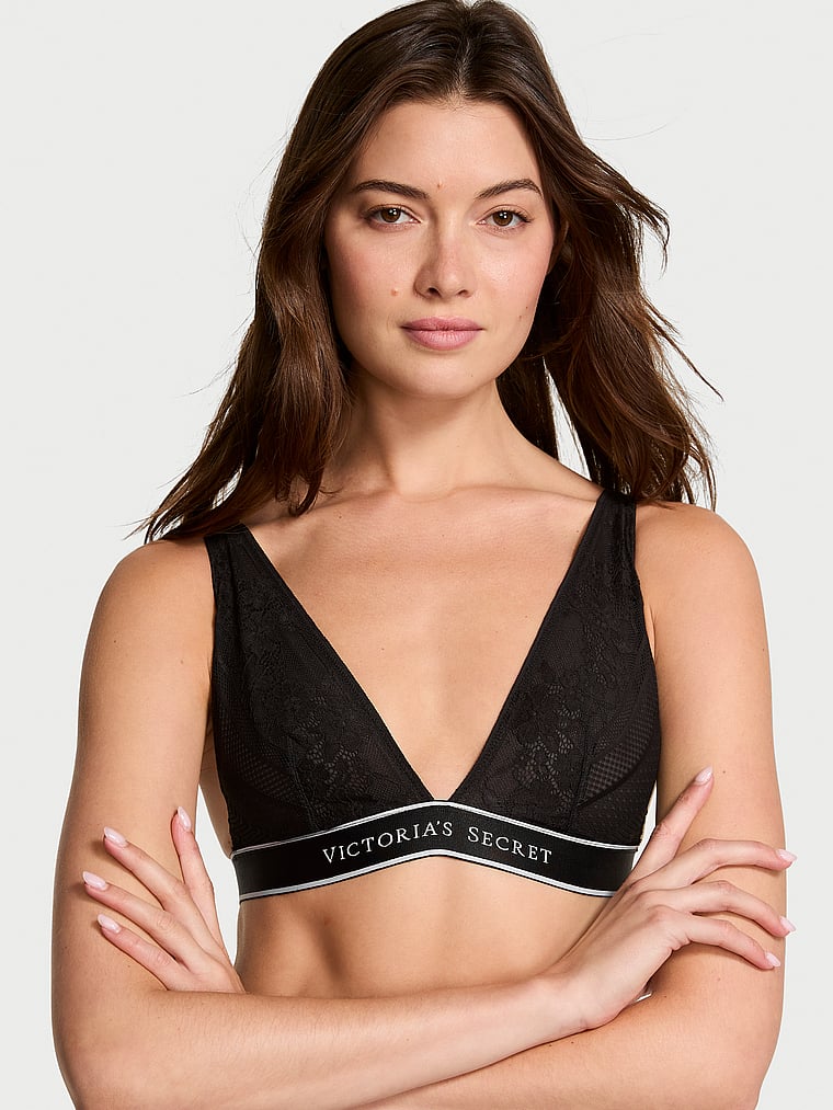 This simplified, wireless design features a plunging neckline and soft, stretchy lace for a sexy, easy-wear style. Finished with our logo at the bottom band.