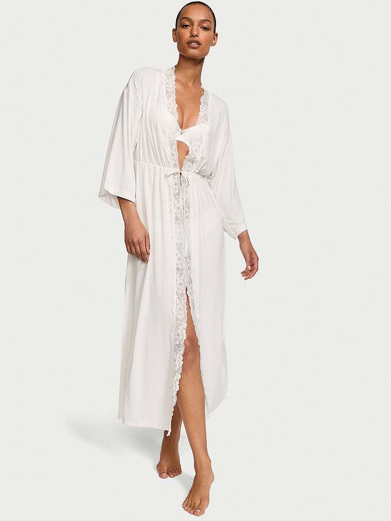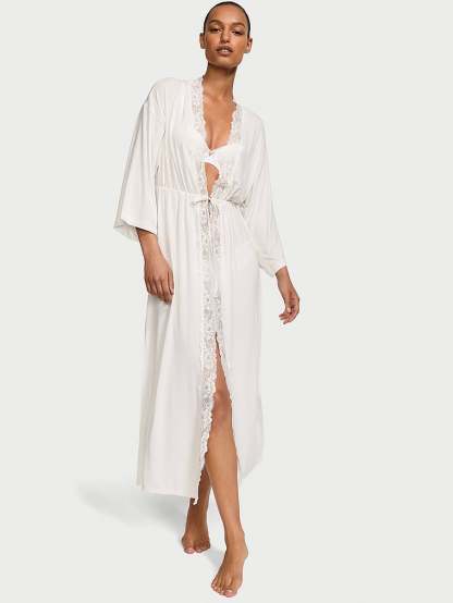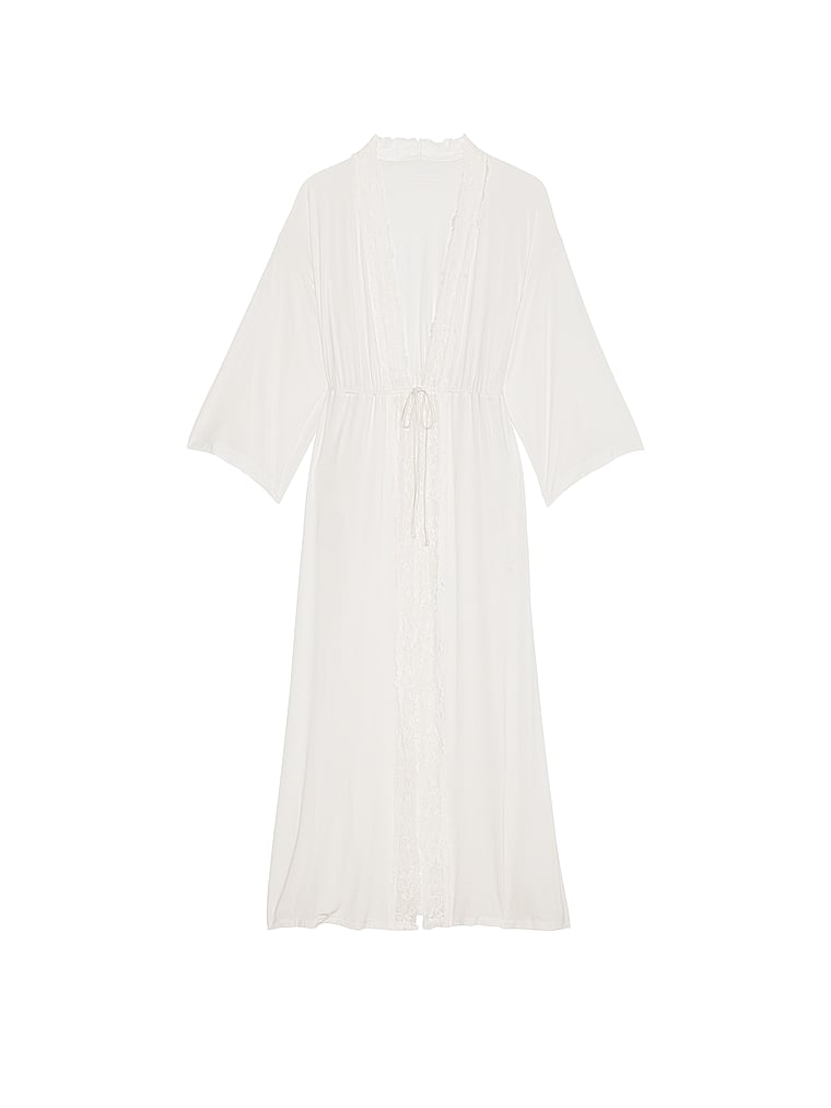 Up the femme factor day or night with this sweeping modal robe traced in our vintage-inspired lace.