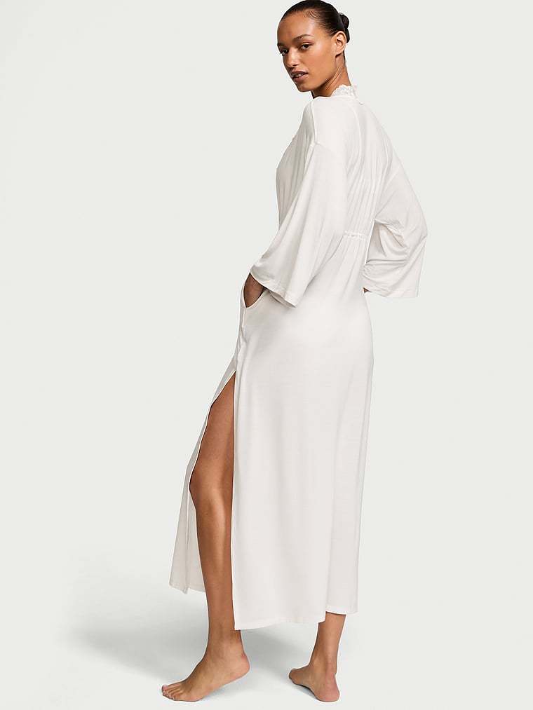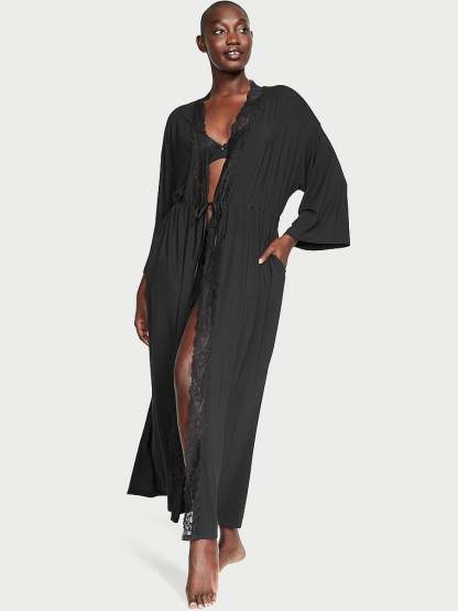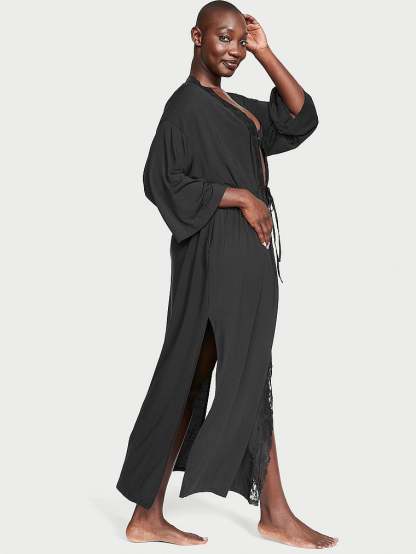Victothtria's Secret Modal & Lace Trim High-Slit Maxi Robe