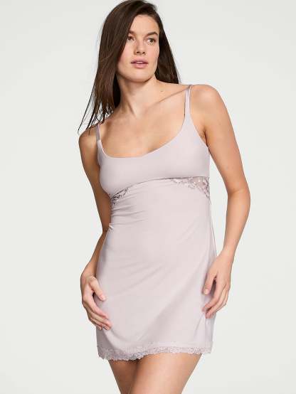 So buttery-soft and flattering, you��ll love wearing this sleek slip dress everywhere. Featuring a sweetheart neckline, built-in shelf bra, and delicate lace trim with a vintage feel.