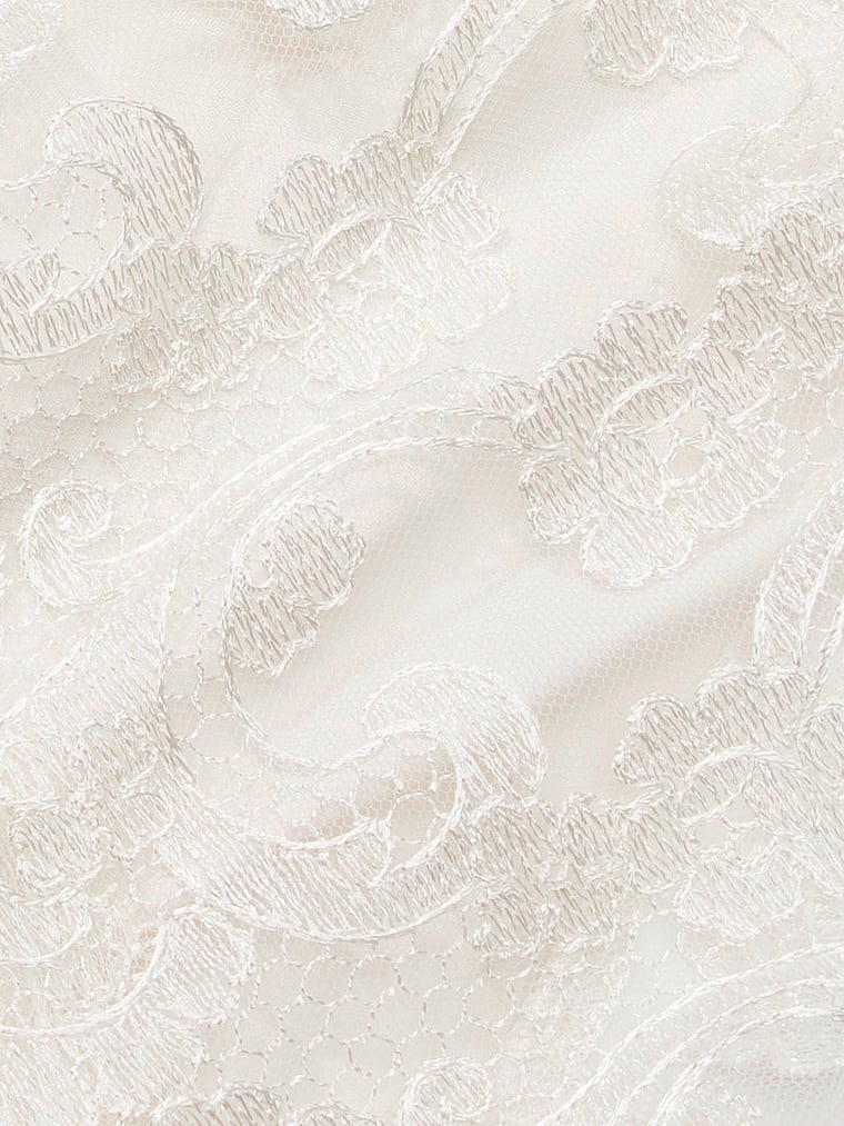 - Tonal floral embroidery details