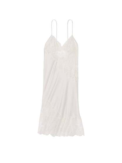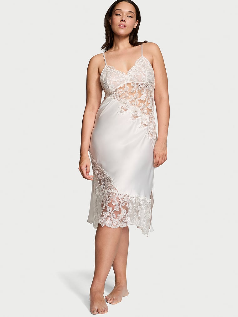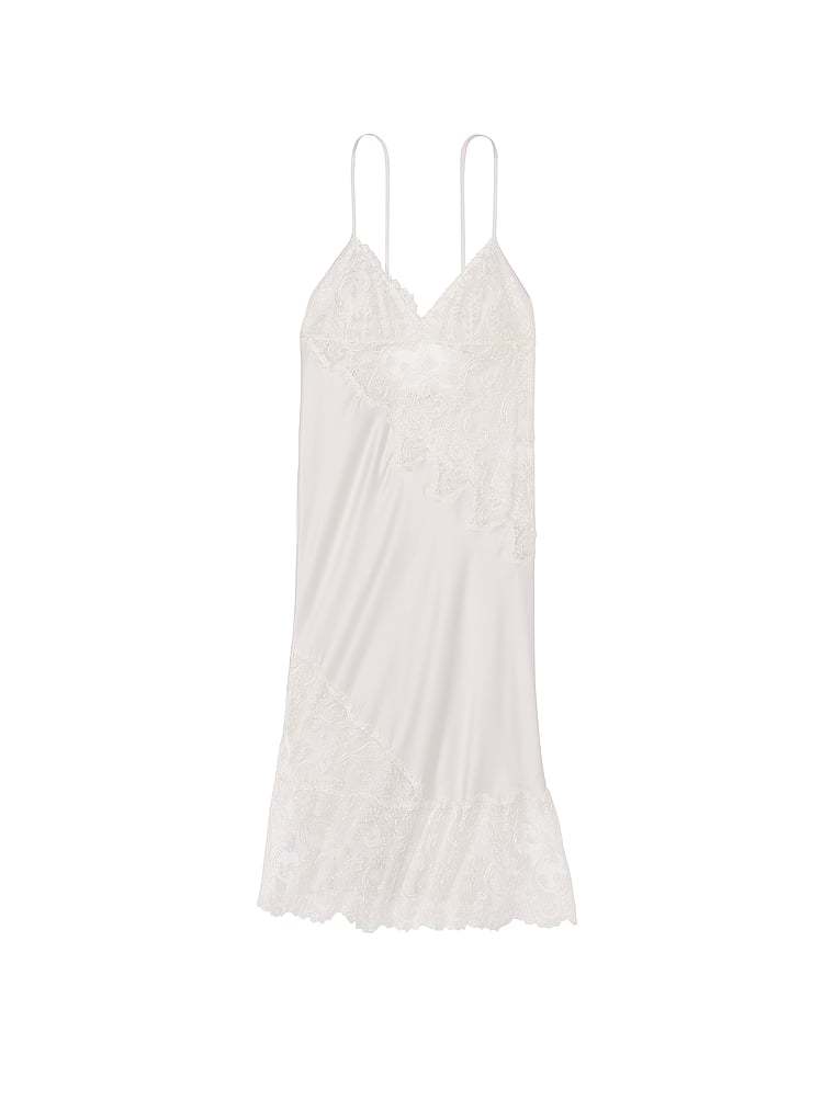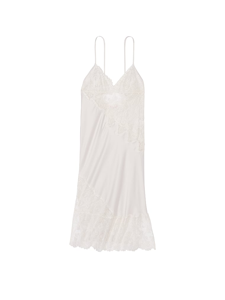 Our new floral embroidery outlines this glossy slip, creating a dreamy, ethereal design you'll find excuses to wear in and out.