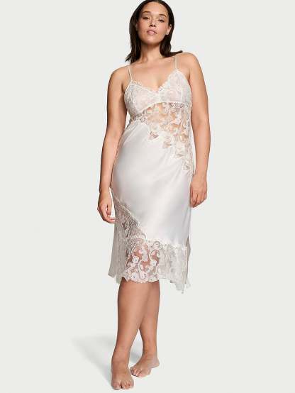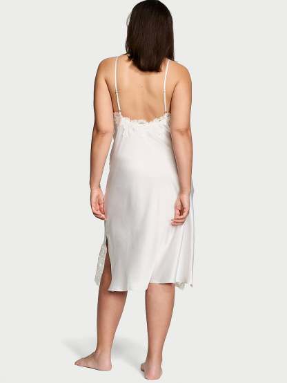 Victothtria's Secret Satin Boho Floral Embroidery Midi Slip