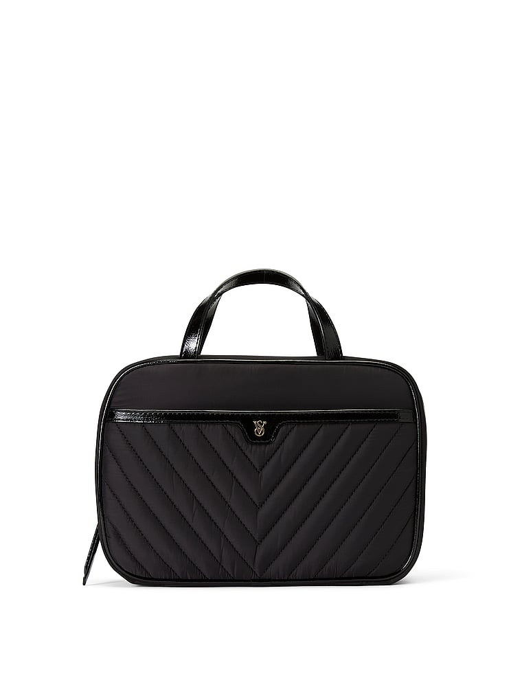 Jet, set, go. This sleek case holds everything you could ever need. Keep everything organized in your travel bag, from fragrance to hair care with an optional hook to hang as you get ready.