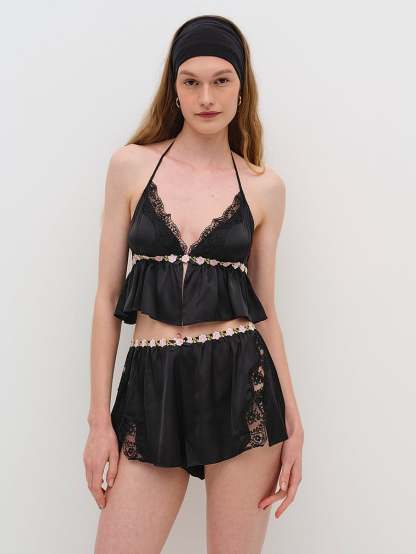 Inspired by dreams of the past, this vintage pair of sleep shorts features effortless lace seams and a fluttery silhouette that sits at the thigh.