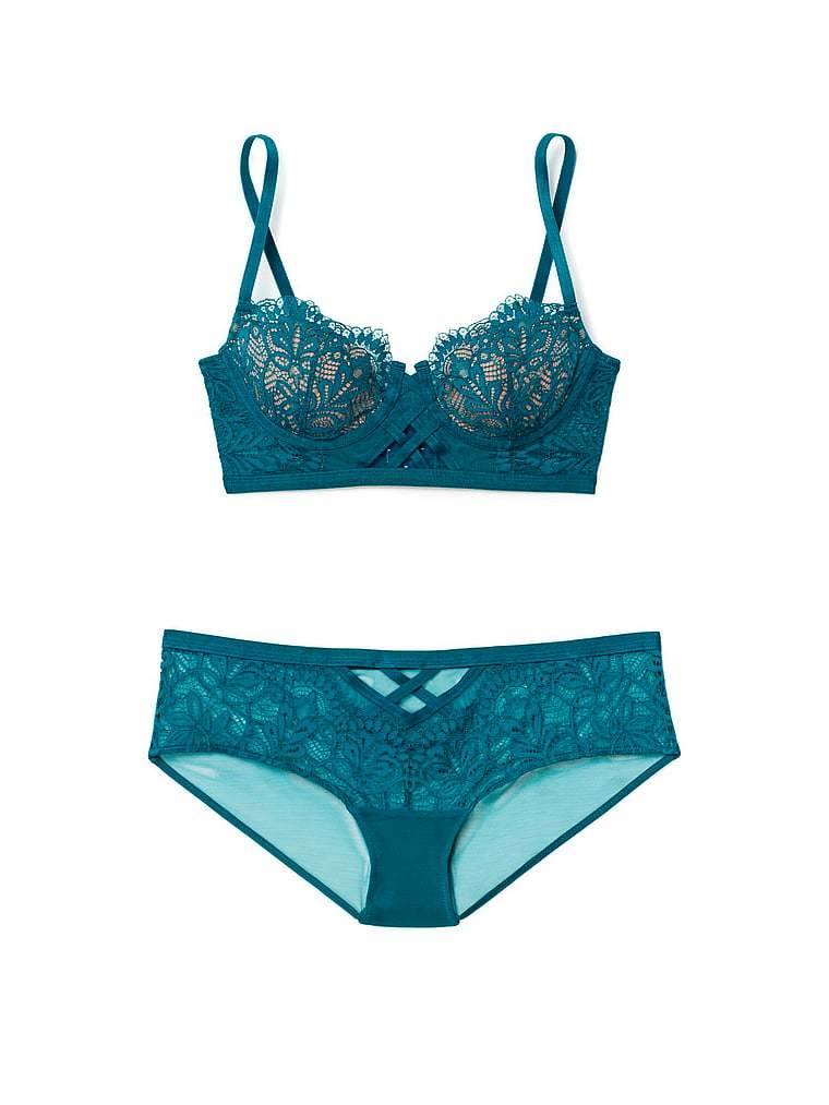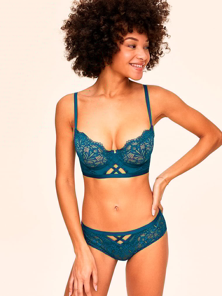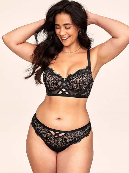 This feminine, lacy, contour balconette showcases a sultry longline silhouette and features crossed-elastic detail and a keyhole accent in front.