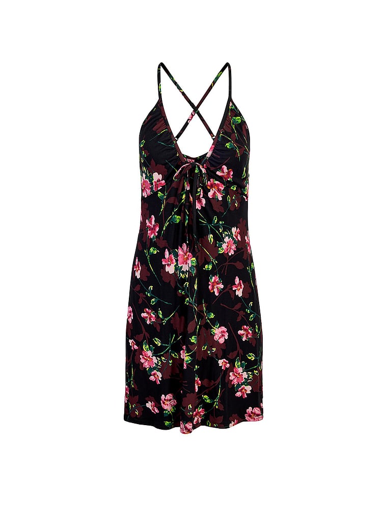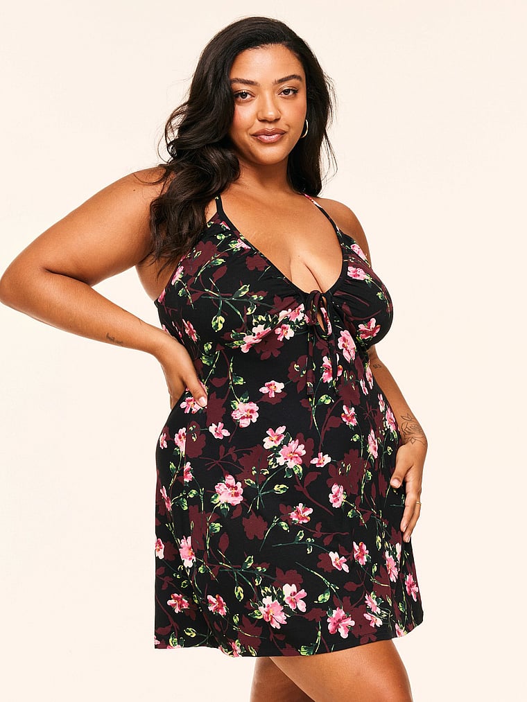 The perfect balance of comfort and style, this soft, easy style features ruching details, a plunging neckline, and an adjustable front keyhole.