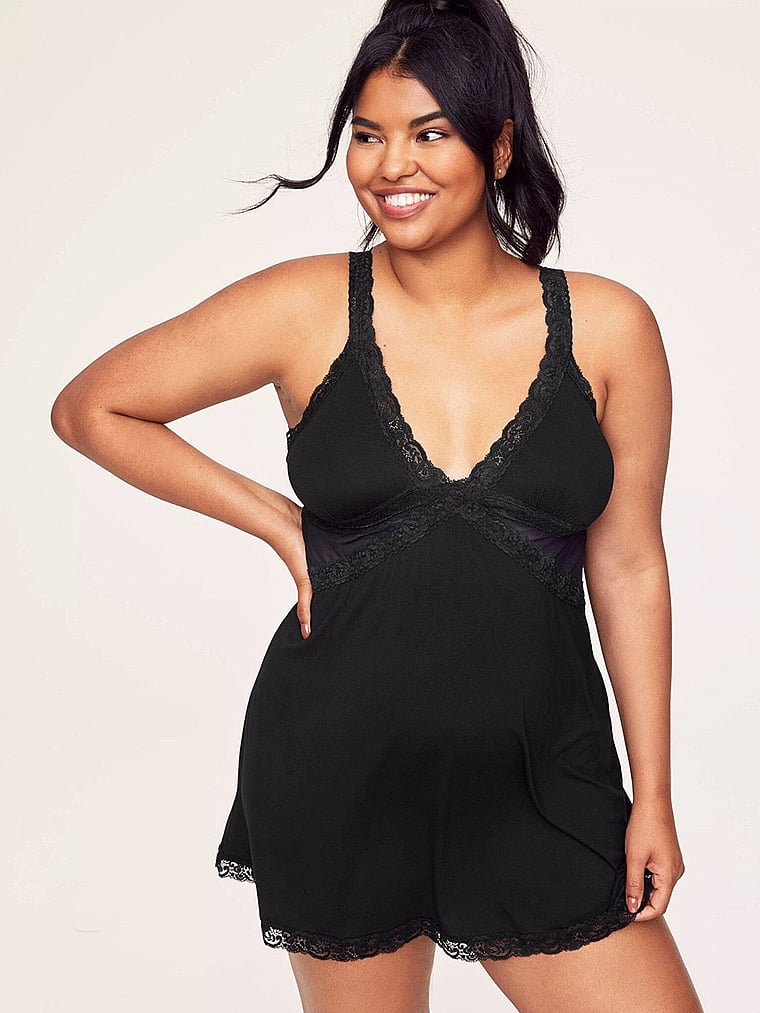 Consider your lounge look covered. The super-soft knit keeps you comfy all day, while the lace-trim details and breathable, sheer mesh insets bring out your flirty side.