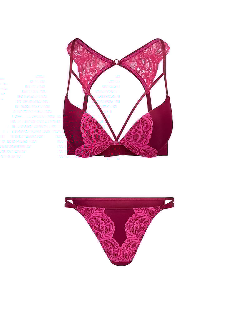 Choose romance with this push-up plunge bra, crafted with a flirty lace butterfly illusion on the racerback and cups.