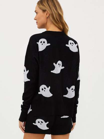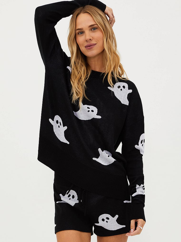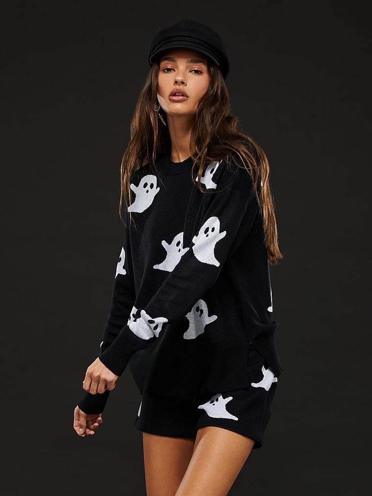 Get spooky and stylish in this oh-so-soft crew neck sweater with a fun Halloween spin.
