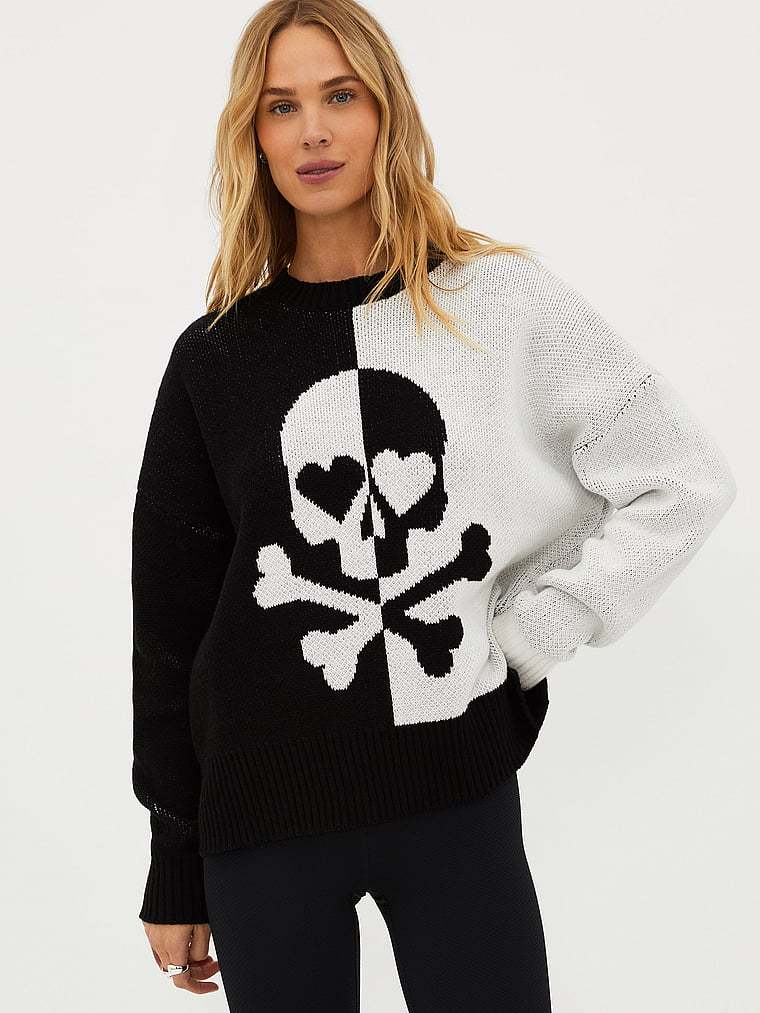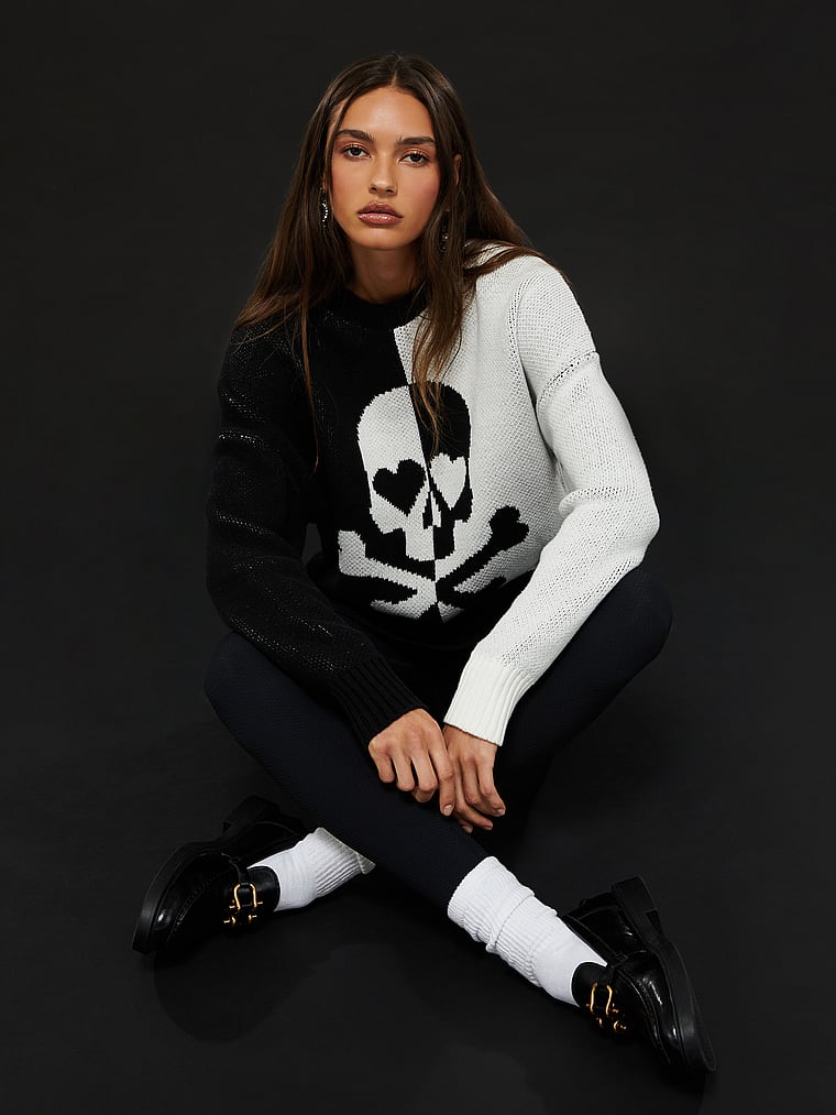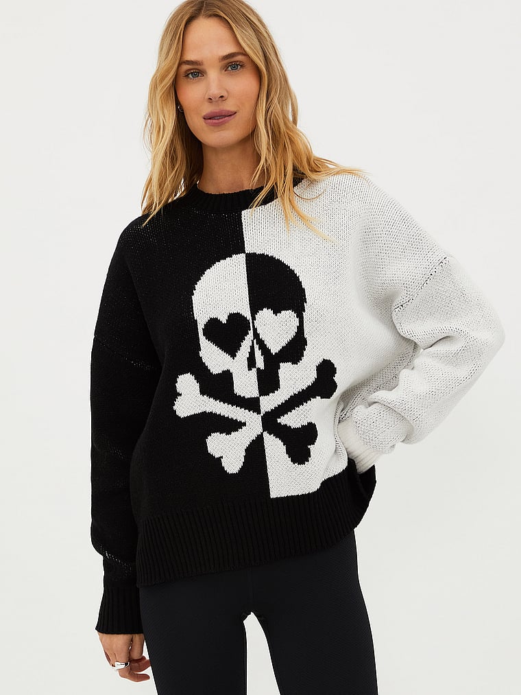 Get spooky and stylish in this oh-so-soft crew neck sweater with a fun Halloween spin.