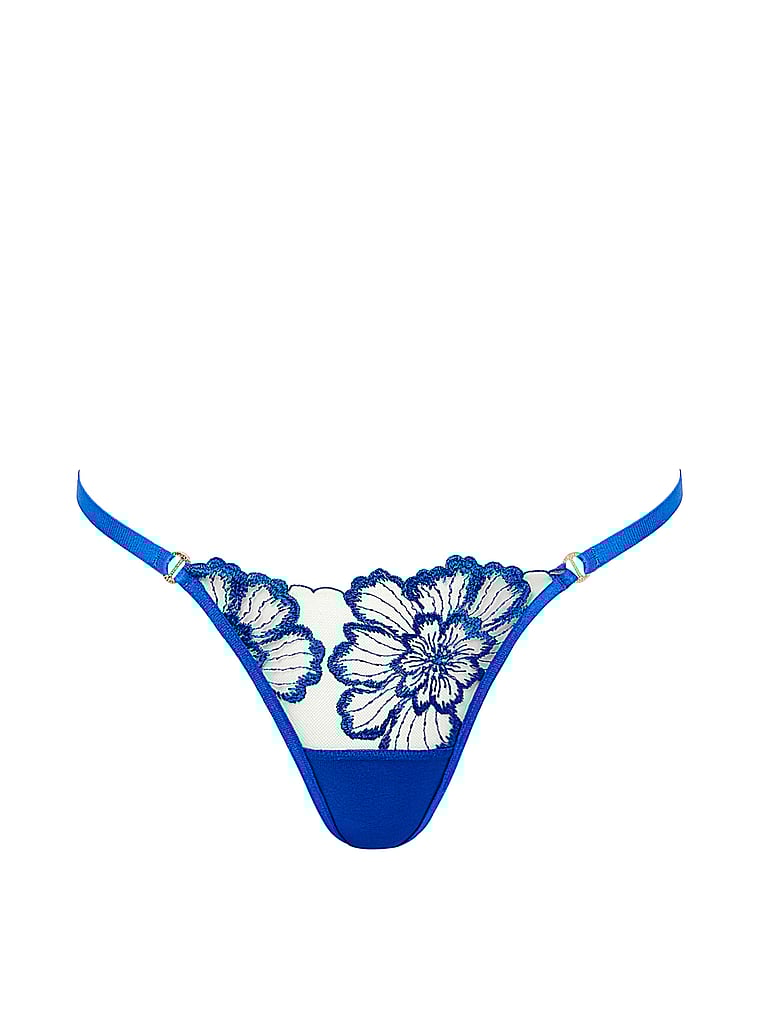 Intricate embroidered florals add a playful finish to this sweet style. Complete your lingerie look and pair it with the Catalina Bra and Thigh Harness.