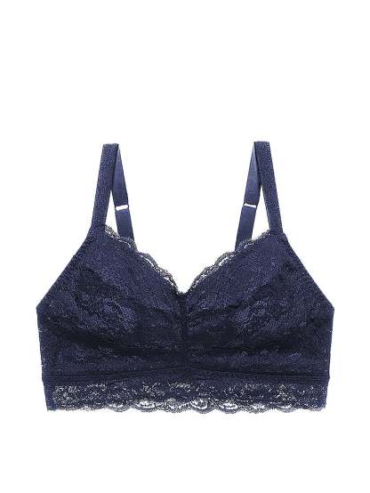 Comfortable, wireless support and an easy pull-on design get a romantic lift with lace trim. Power mesh and adjustable straps add support.