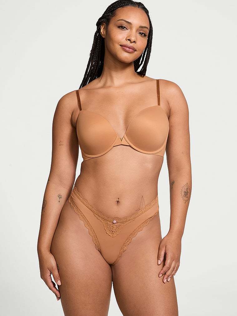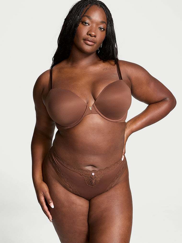 - Lower, plunging center gore provides less coverage, perfect for low-cut tops