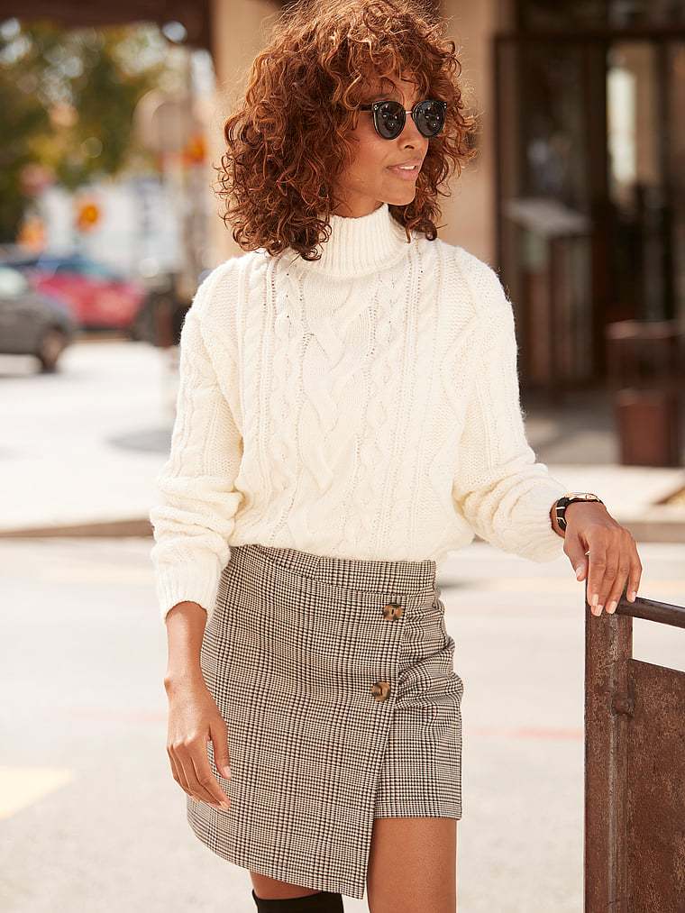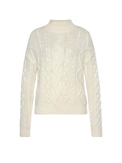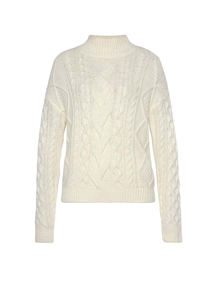 Who doesn't love a traditional, cozy cable-knit sweater? This one has dropped shoulders and soft ribbing at the cuffs for added style.
