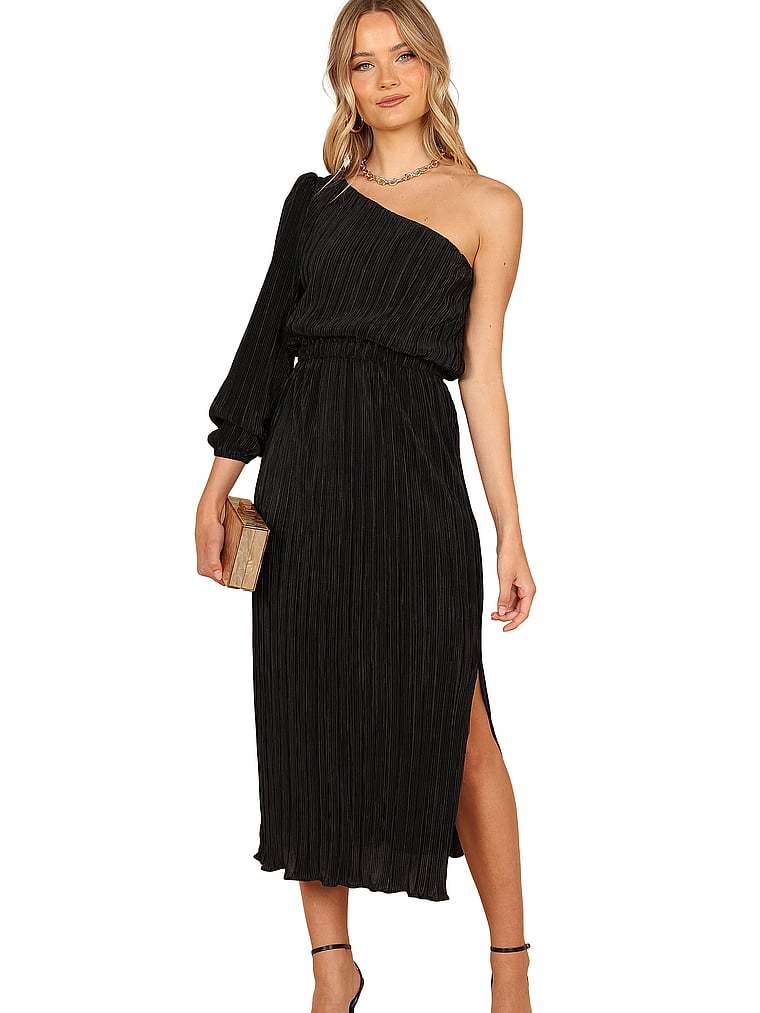 Petal & Pup Ponte One Shoulder Pleated Midi Dress