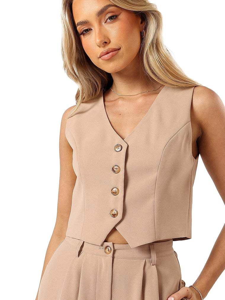 Crafted with a v neckline and a sleeveless design that offers endless layering possibilities, this piece is a true testament to elegant and sophisticated styling.