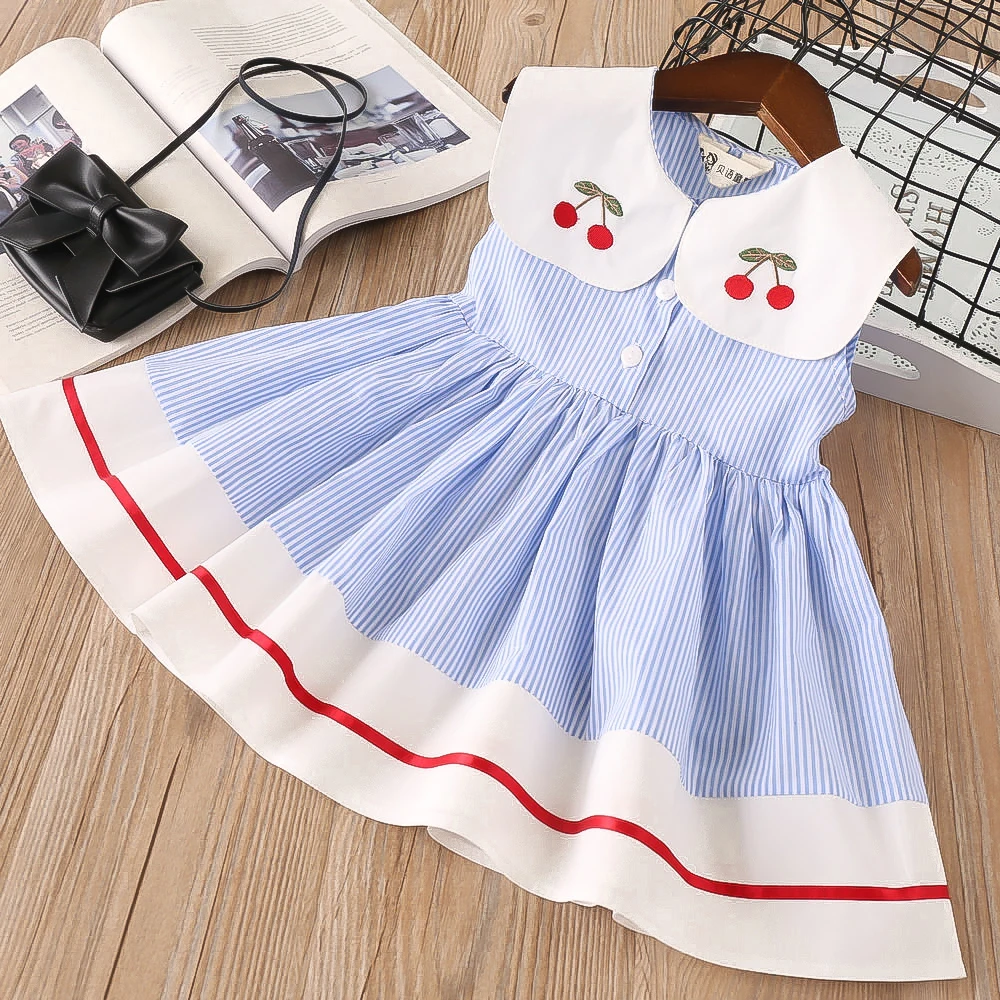 With an eye-catching cherry on the collar. This is a charming vintage dress for little girls. Trust embodying the essence of summer. This dress comes in a playful cherry embroidered detailing on the collars. What a better way to welcome the return of the warmer weather and longer days.
