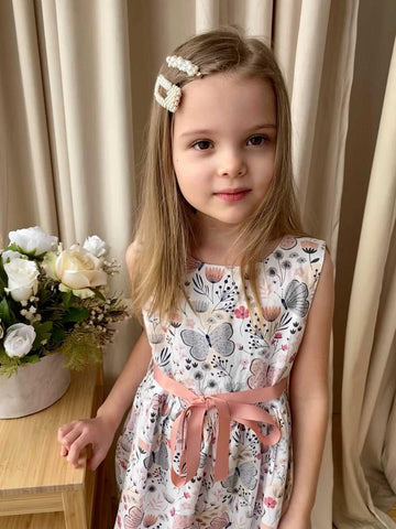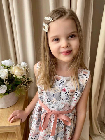 This sleeveless dress is printed decorated with butterflies and flowers. It's a relaxing dress for casual wear for your little one. Pair it with sandals and a sun hat for the perfect sunny day look.