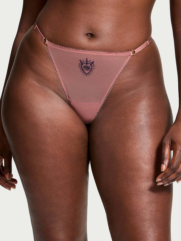 Cheeky embroidery is the unique finishing touch on this dainty mesh panty.