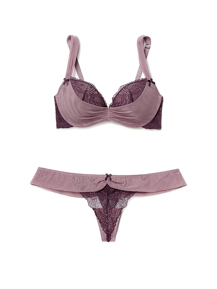This contoured demi features floral lace uniquely layered with a pleated mesh overlay for a one-of-a-kind style.
