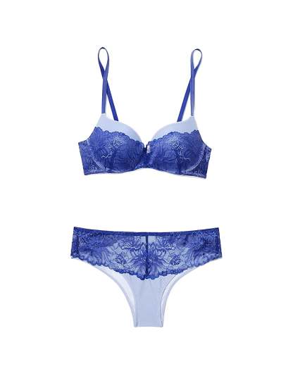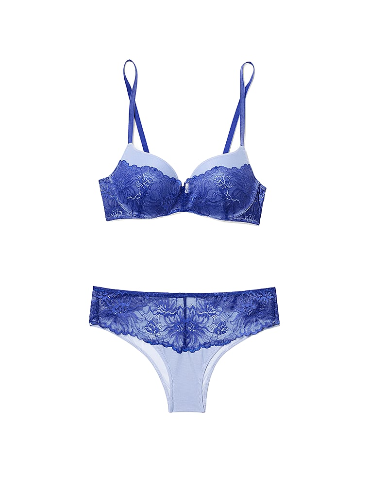 This daring plunge push-up delivers on style, comfort, and sustainability with smooth, form-fitting mesh cups made from partially recycled nylon and adorned with floral lace.